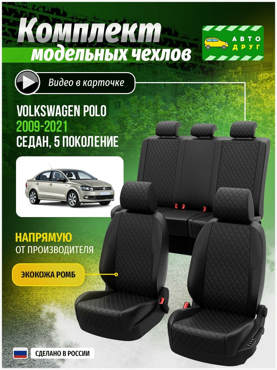Чехлы для сидений Фольксваген Поло 5 седан 2009-2021 гв Экокожа с ромбом Черный и Черный A0782D068 Автодруг: сравнение цен, характеристики, фото, актуальное наличие и цены.