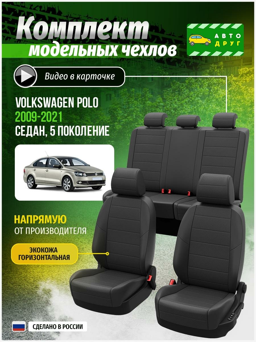 Данный комплект чехлов предназначен для салона со следующими особенностями: Чехлы для Volkswagen Polo. Задние спинка и сиденье формата 40 на 60. Есть передний подлокотник, 5 подголовников. С 2010-2020г, седан.