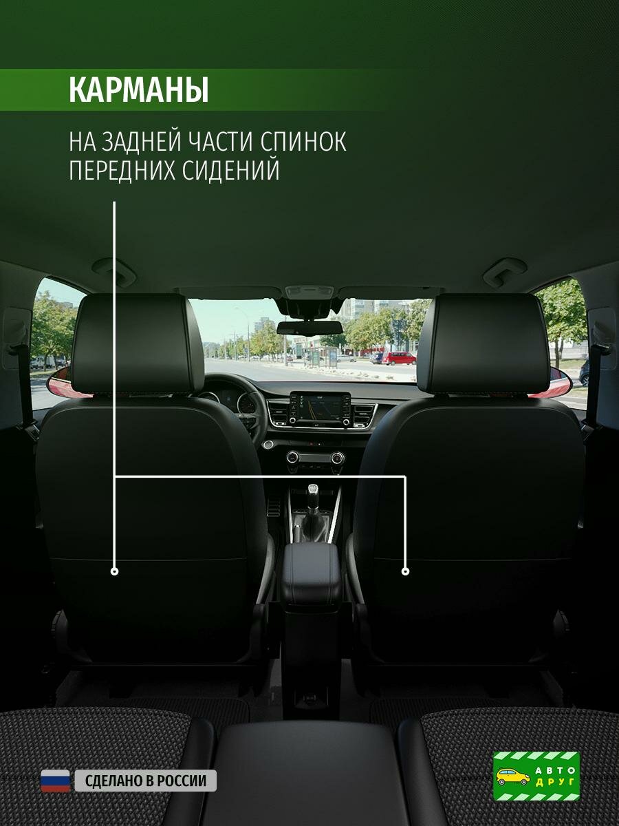 | Подробная комплектация | Комплект модельных авточехлов на сиденья и подголовники с креплением в сумке с ручками |
