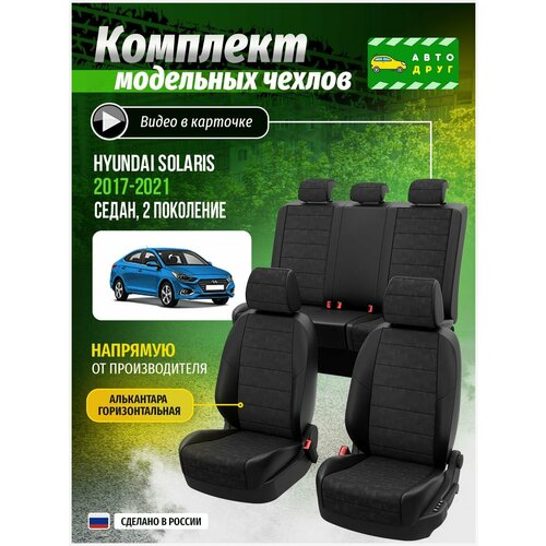 Чехлы для сидений Хендай Солярис 2 седан 2017, 2018, 2019, 2020, 2021 гв Алькантара Черный и Черный A0254D014 Автодруг: сравнение цен, характеристики, фото, актуальное наличие и цены.