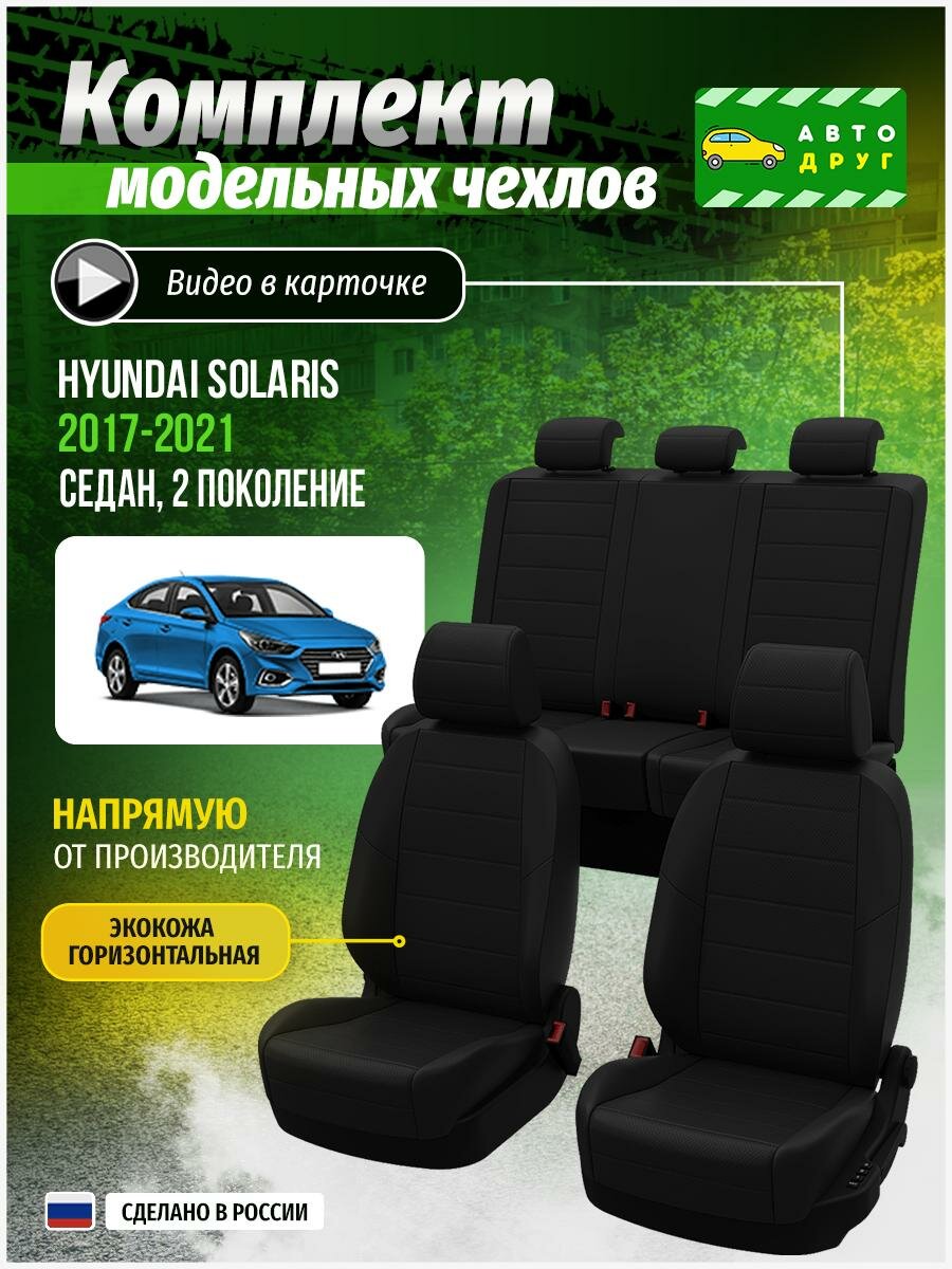 Чехлы для сидений Хендай Солярис 2 седан 2017, 2018, 2019, 2020, 2021 гв Экокожа Черный и Черный A0254D028 Автодруг: сравнение цен, характеристики, фото, актуальное наличие и цены.