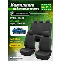 Данный комплект чехлов предназначен для салона со следующими особенностями: Чехлы автомобильные для Hyundai Solaris с 2017-н. в, седан, хэтчбек. Задние спинка и сиденье единые. Имеется 2 передних подголовника. Задние чехлы в форме "горба".