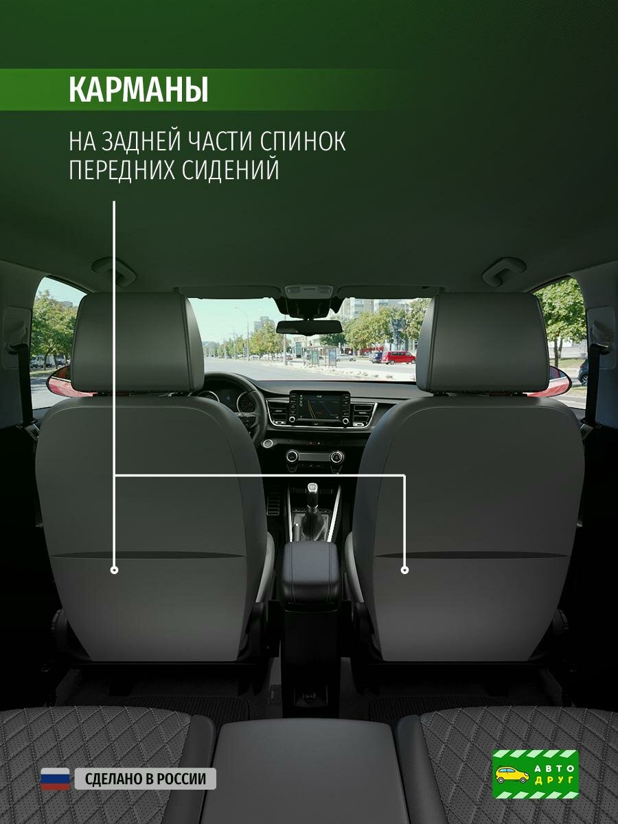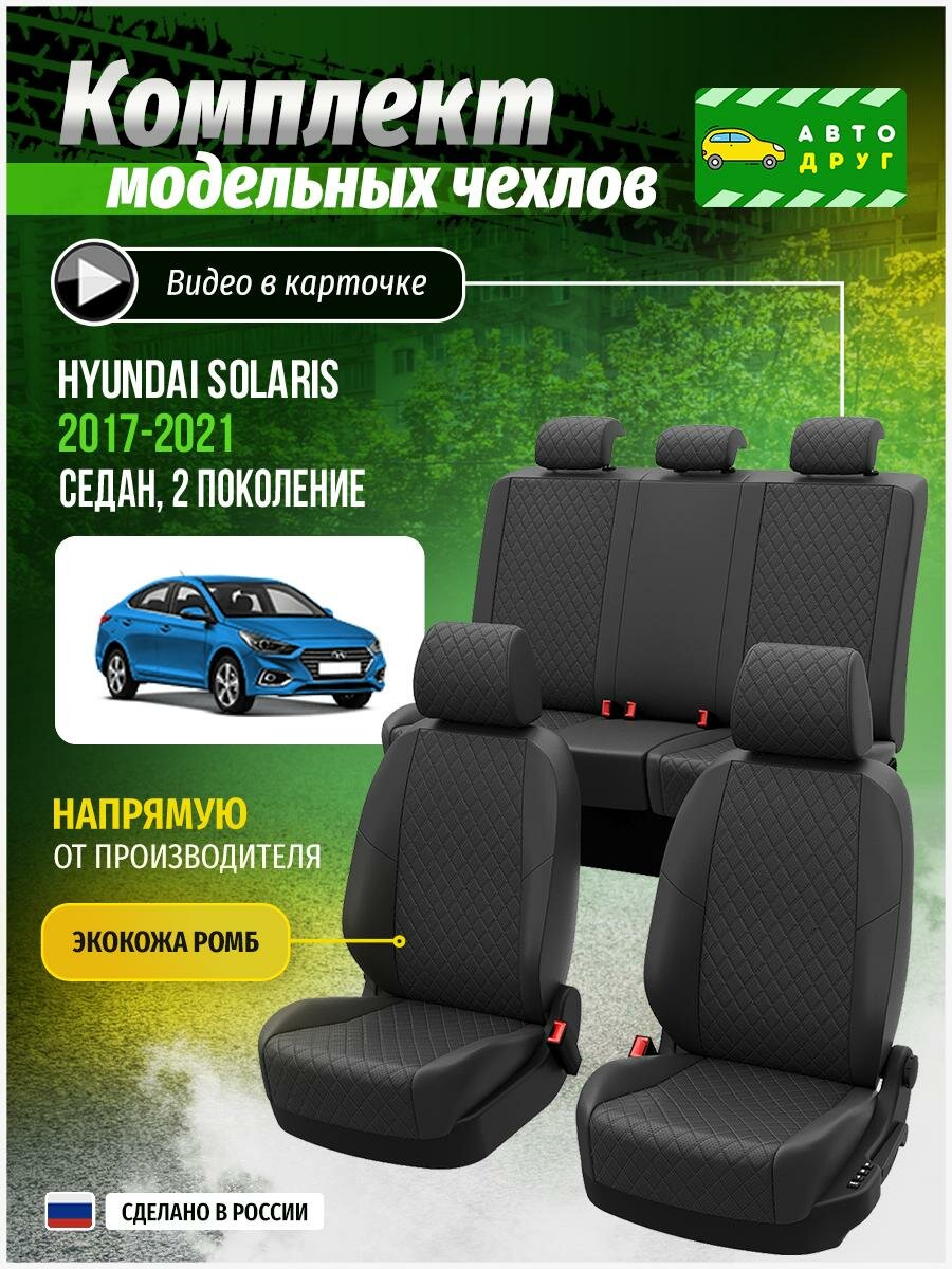 Купить Чехлы для сидений Хендай Солярис 2 седан 2017, 2018, 2019, 2020, 2021 гв Экокожа с ромбом Серый и Темно-Серый A0254D079 Автодруг с доставкой по всей России.
