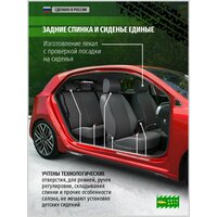 Учтены технологические особенности сидений, есть отверстия для регулировочных ручек, ремней безопасности, они отдельно прострочены