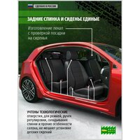 Учтены технологические особенности сидений, есть отверстия для регулировочных ручек, ремней безопасности, они отдельно прострочены