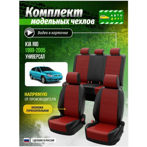Купить Чехлы для сидений Киа Рио 1 универсал 1999, 2000, 2001, 2002, 2003, 2004, 2005 гв Экокожа Красный и Черный A0290D008 Автодруг с доставкой по всей России.