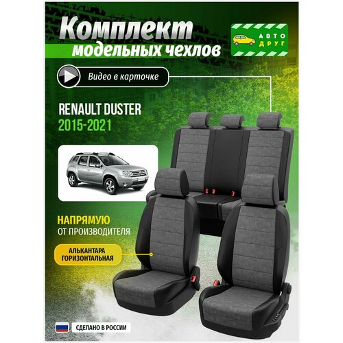 Данный комплект чехлов предназначен для салона со следующими особенностями: Чехлы для автомобиля Renault Duster . Выпускался с 2015 по н. в. джип Задняя спинка 2/3, сиденье сплошное, 5-подголовников. (С AIR-Bag и без AIR-Bag перед сиденья)