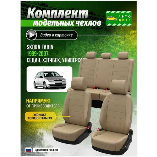 Купить Чехлы для сидений Шкода Фабия 1 седан, хэтчбек, универсал 1999-2007 гв Экокожа Бежевый и Бежевый A0617D030 Автодруг с доставкой по всей России.