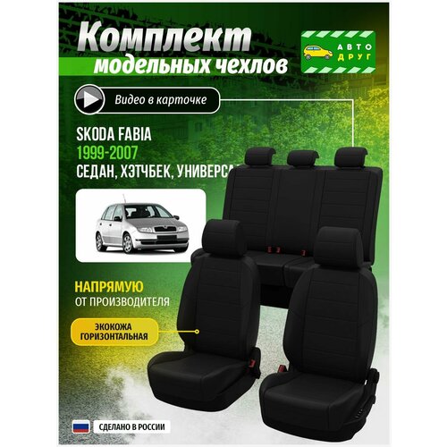 Купить Чехлы для сидений Шкода Фабия 1 седан, хэтчбек, универсал 1999-2007 гв Экокожа Черный и Черный A0617D028 Автодруг с доставкой по всей России.