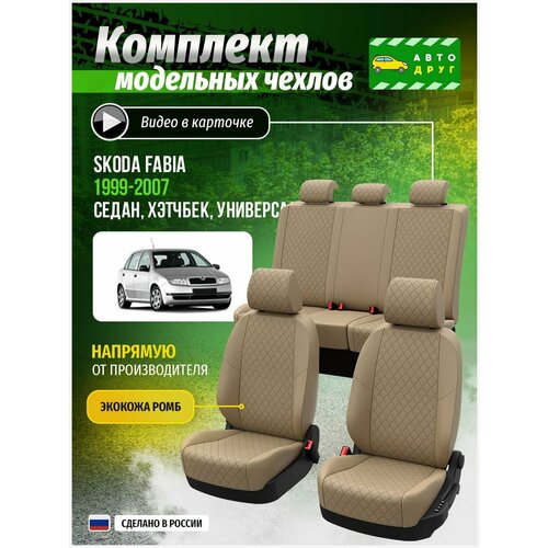 Купить Чехлы для сидений Шкода Фабия 1 седан, хэтчбек, универсал 1999-2007 гв Экокожа с ромбом Бежевый и Бежевый A0617D150 Автодруг с доставкой по всей России.