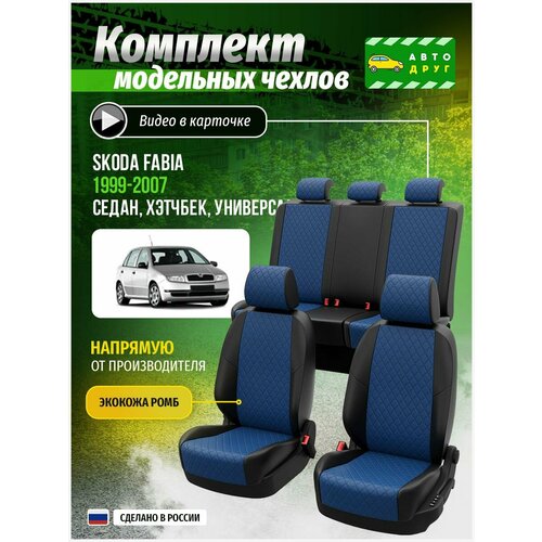 Купить Чехлы для сидений Шкода Фабия 1 седан, хэтчбек, универсал 1999-2007 гв Экокожа с ромбом Синий и Черный A0617D134 Автодруг с доставкой по всей России.