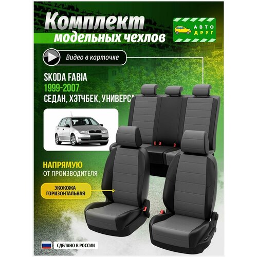 Чехлы для сидений Шкода Фабия 1 седан, хэтчбек, универсал 1999-2007 гв Экокожа Серый и Черный A0617D070 Автодруг: сравнение цен, характеристики, фото, актуальное наличие и цены.