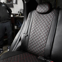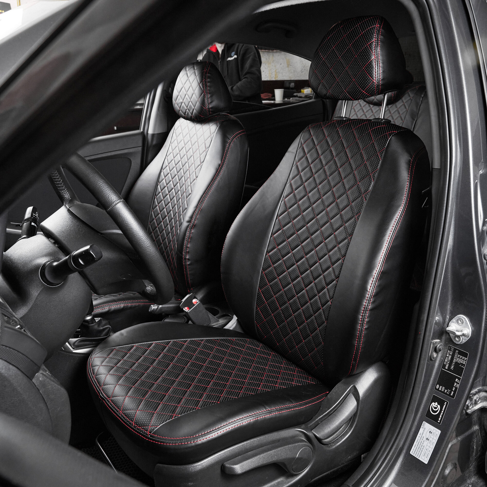 Купить Авточехлы Lazebra «Красный ромб», для Lada Vesta 2015-, комплект, экокожа, износостойкие с доставкой по всей России.
