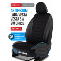 Авточехлы Российского бренда Lazebra - комплект на весь салон Лада Веста 2015 по н. в.- комплект отшивается по индивидуальным лекалам для конкретного авто, поэтому идеально подойдет для Lada Vesta / Vesta SW / SW Cross. Чехлы для автомобильных сидений оснащены раздельной задней спинкой 40/60. Авто чехлы в машину выполнены из приятной премиальной экокожи , высокого качества толщиной 0,8мм. Материал триплирован поролоном 2 мм , чехол поэтому приобретает дополнительную мягкость . Обратите внимание!- НЕ предусмотрены отверстия под подголовники. Мы специально не делаем отверстий, для того, чтобы чехлы выглядели наиболее привлекательно. Их сделать легко: этот процесс есть в инструкции по установке.