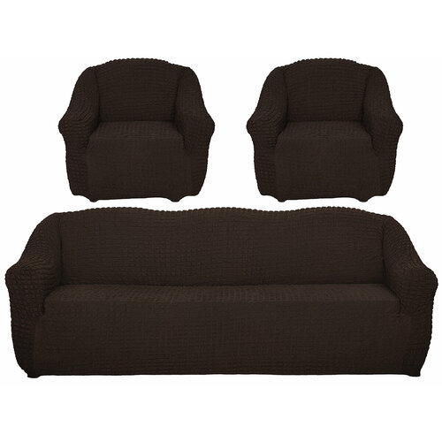 Чехлы на 3-х местный диван и два кресла с подлокотниками, жатка, темно-коричневые: сравнение цен, характеристики, фото, актуальное наличие и цены.