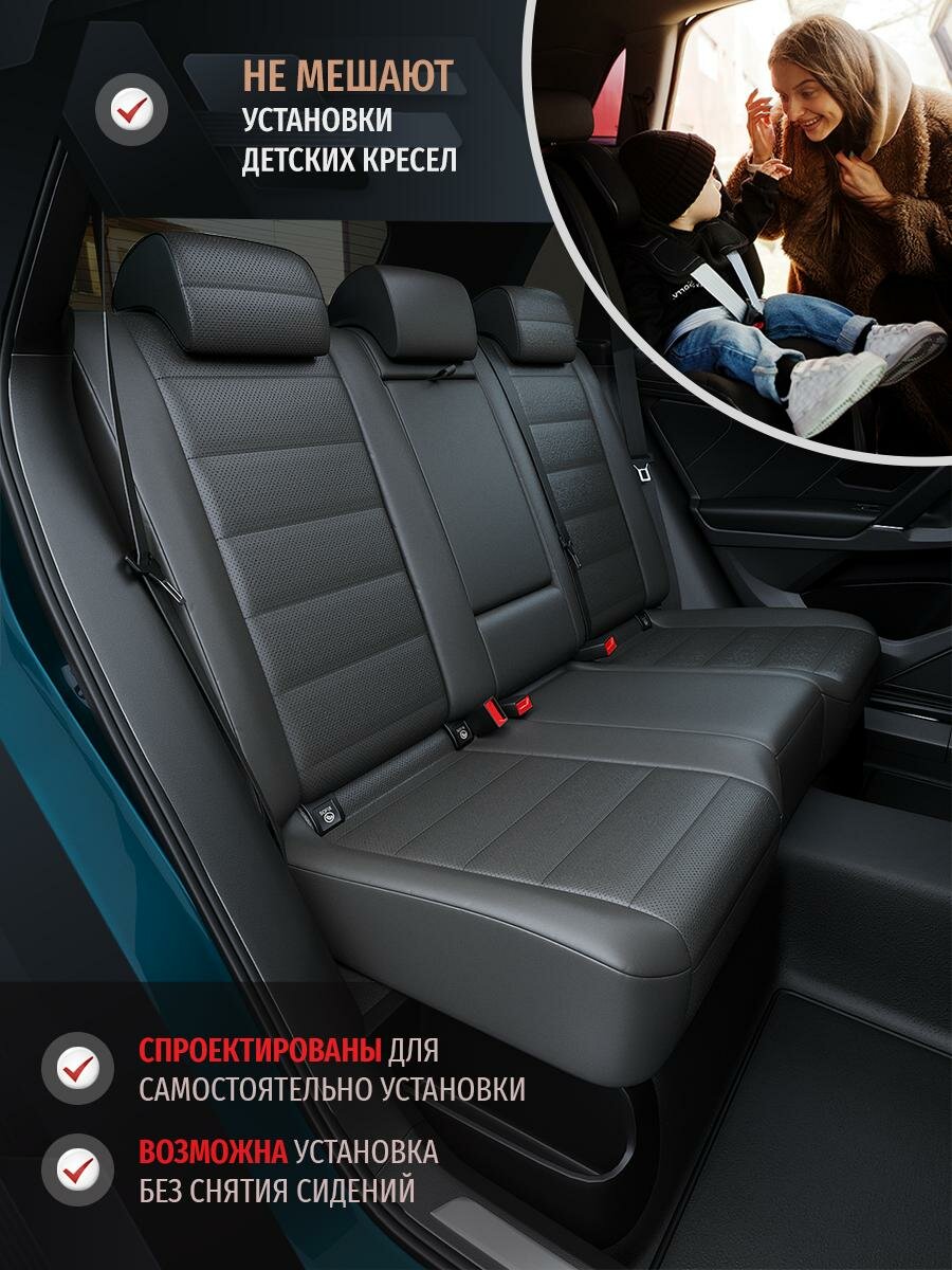 Модельные чехлы, в отличие от универсальных, учитывают все особенности сидений: нюансы пошива, форму, технологические прорези. Пошив по оригинальным лекалам позволяет исключить малейшие отклонения от образца и гарантировать безупречное соответствие сидушкам по размеру и форме.