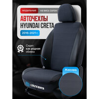 Авточехлы Российского бренда Lazebra - комплект на весь салон Hyundai Creta 1 Кроссовер 2016 - 2021 г. в. Чехол для автомобиля на Хендай Крета оснащен раздельной задней спинкой 40/60. Авто чехлы в машину выполнены из приятной премиальной экокожи высокого качества толщиной 0,8 мм. Материал триплирован поролоном 2 мм, чехол поэтому приобретает дополнительную мягкость. Сшиты строго по лекалам сиденья. В комплекте предусмотрены все технические отверстия, соответствующие конструкции машины (для ISOFIX, для систем крепления ремней, для креплений сидений и т. д.). Автомобильные чехлы оснащены раздельной задней спинкой 40/60.