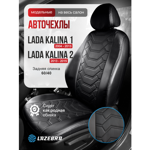 Авточехлы Российского бренда Lazebra - комплект на весь салон Lada Kalina 2 2013 – 2015г. г. и Lada Kalina 1 2004 – 2013 г. г. - отшивается по индивидуальным лекалам для конкретного авто, поэтому идеально подойдет для данных моделей.