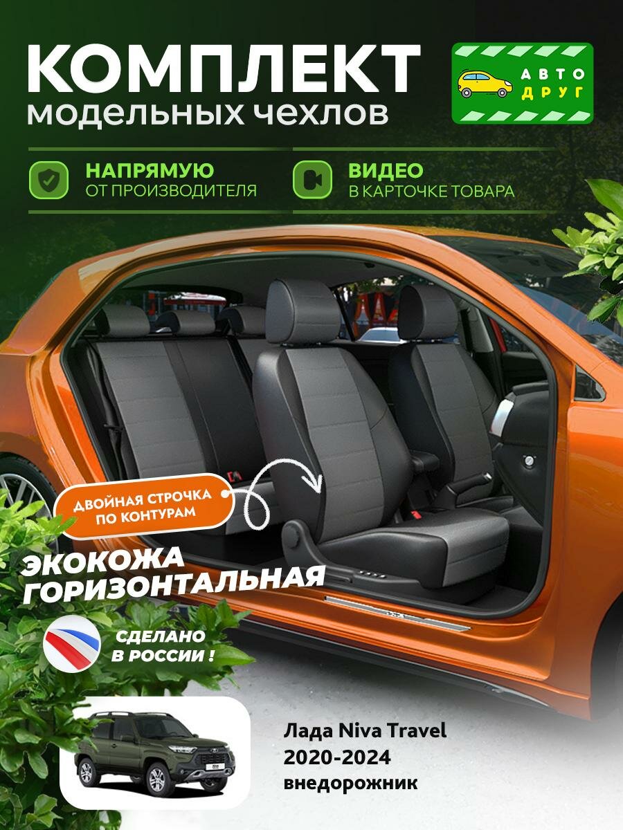 Черный цвет с элементами темно-серого придает интерьеру автомобиля элегантный и современный вид. Чехлы точно соответствуют комплектации Лада Нива Тревел 1 2020-2024, обеспечивая идеальную посадку и защиту каждого сиденья.