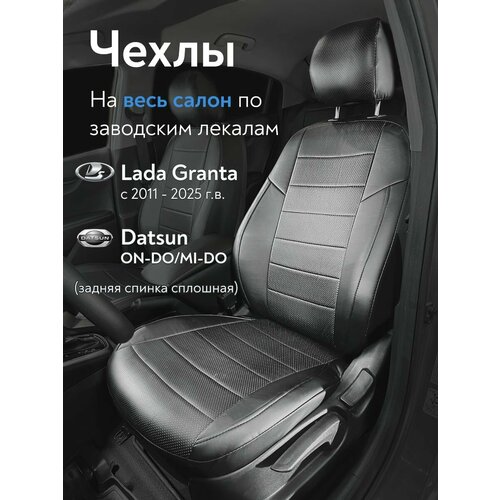 Автомобильные чехлы подойдут на Lada Granta / Datsun ON-DO / Datsun MI-DO. Внимание! Спинка заднего сиденья сплошная. Чехлы сшиты строго по форме сидений Лада Гранта (Lada Granta) / Датсун он-до (Datsun ON-DO) / ми-до (MI-DO) (у этих машин одинаковые сиденья).