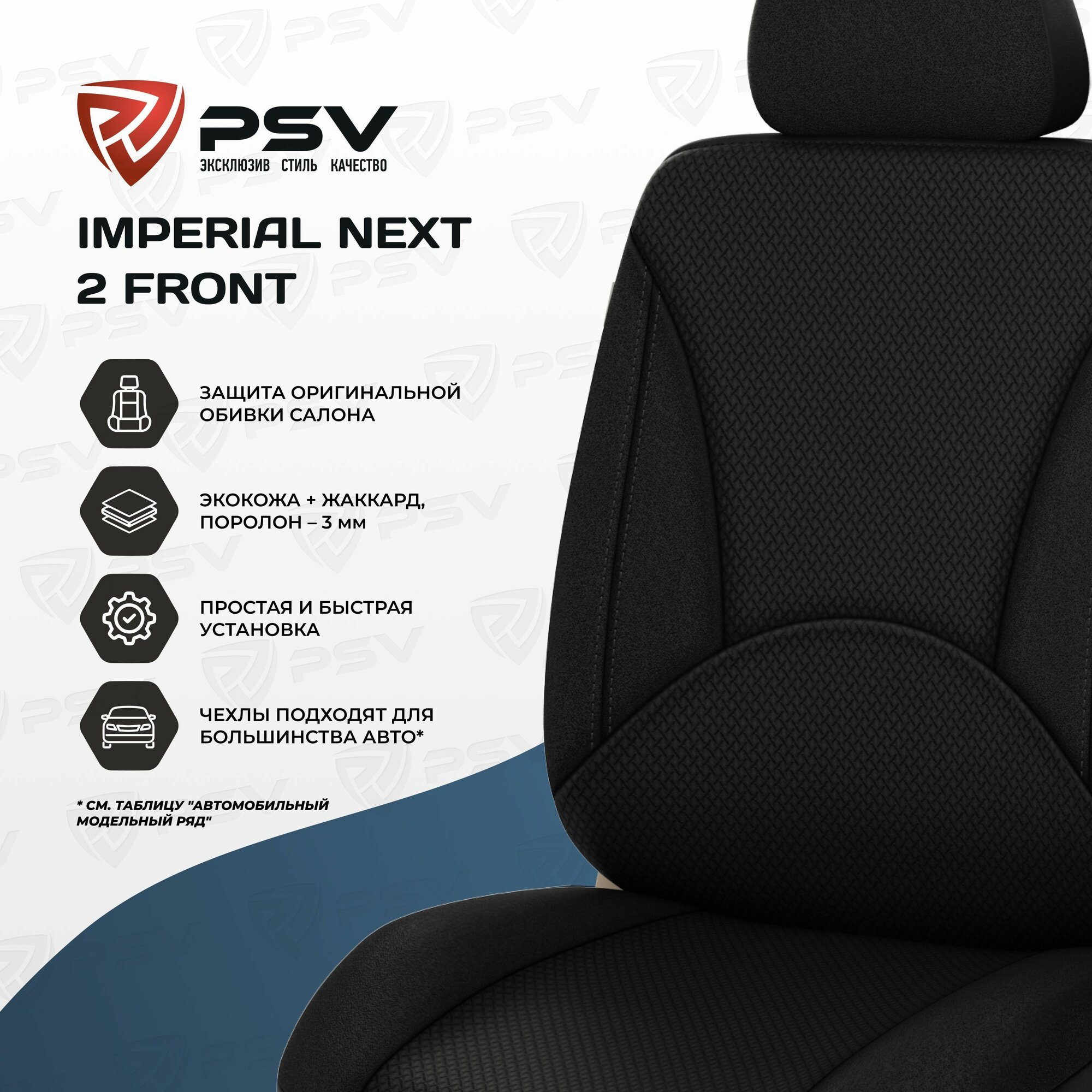 Чехлы на сиденья автомобильные в машину на передние сиденья универсальные PSV Imperial Next 2 FRONT (Черный/Отстрочка черная), экокожа + жаккард: сравнение цен, характеристики, фото, актуальное наличие и цены.