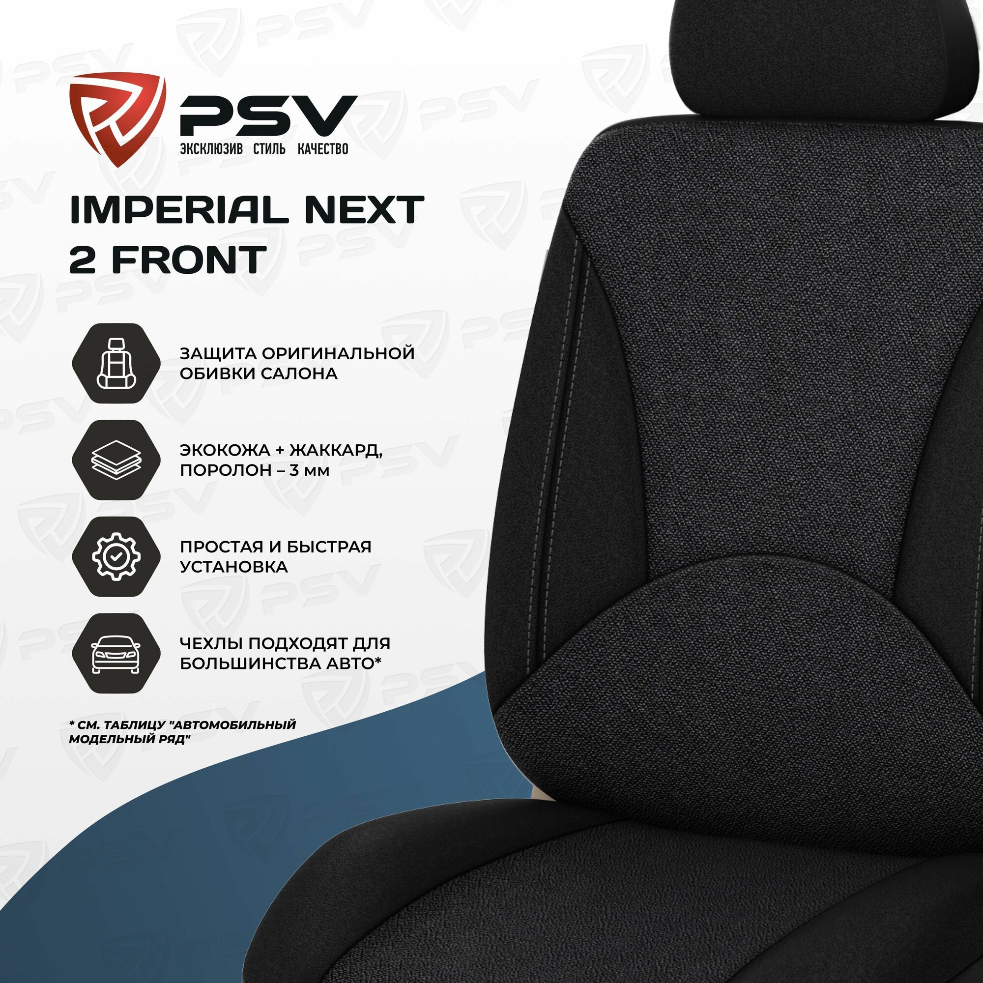 Чехлы на сиденья автомобильные в машину на передние сиденья универсальные PSV Imperial Next 2 FRONT (Т. Серый), экокожа + жаккард: сравнение цен, характеристики, фото, актуальное наличие и цены.