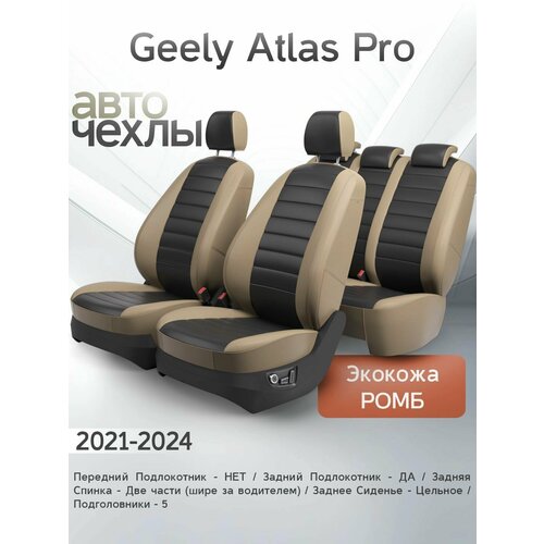 PATLASPRO - Geely Atlas Pro 2021-2024 / Передний Подлокотник - НЕТ / Задний Подлокотник - ДА / Задняя Спинка - Две части (шире за водителем) / Заднее Сиденье - Цельное / Подголовники - 5 / Серия PRO