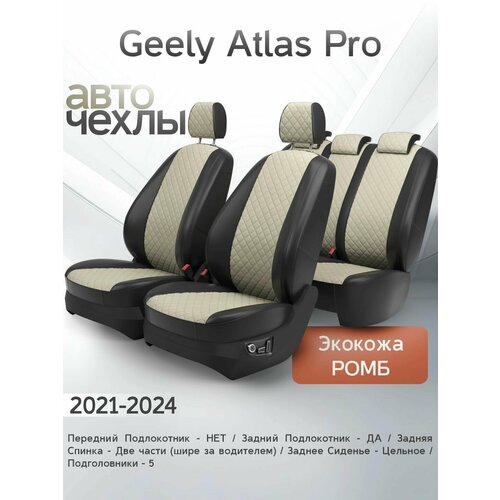 PATLASPRO - Geely Atlas Pro 2021-2024 / Передний Подлокотник - НЕТ / Задний Подлокотник - ДА / Задняя Спинка - Две части (шире за водителем) / Заднее Сиденье - Цельное / Подголовники - 5 / Серия PRO