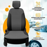 Купить Чехлы на сиденья Great Wall Hover H5 / Грейт Волл Ховер Н5 (2010-2017) из экокожи (комплект модельных авточехлов на весь салон), цвет черно-серый (задняя спинка раздельная 40/60) с доставкой по всей России.