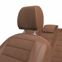 Материал центральной части - износостойкая Алькантара Цвет - коричневый + подкладка 6 мм, из вспененного пенополиуретана для дополнительного комфорта и модельной посадки на сиденье. Материал боковой части - Коричневая Экокожа + 3 мм. вспененного пенополиуретана для 3D эффекта.