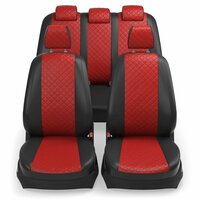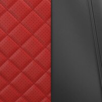 Материал центральной части - износостойкая Экокожа Ромб-Квадрат с перфорацией. , толщина 1.2 мм. Цвет - красный + подкладка 6 мм, из вспененного пенополиуретана для дополнительного комфорта и модельной посадки на сиденье. Материал боковой части - Черная Экокожа + 3 мм. вспененного пенополиуретана для 3D эффекта.