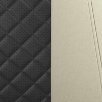 Материал центральной части - износостойкая Экокожа Ромб-Квадрат с перфорацией. , толщина 1.2 мм. Цвет - черный + подкладка 6 мм, из вспененного пенополиуретана для дополнительного комфорта и модельной посадки на сиденье. Материал боковой части - Белая Экокожа + 3 мм. вспененного пенополиуретана для 3D эффекта.