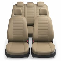 Материал центральной части - износостойкая Экокожа с перфорацией. , толщина 1.2 мм. Цвет - бежевый + подкладка 6 мм, из вспененного пенополиуретана для дополнительного комфорта и модельной посадки на сиденье. Материал боковой части - Бежевая Экокожа + 3 мм. вспененного пенополиуретана для 3D эффекта.