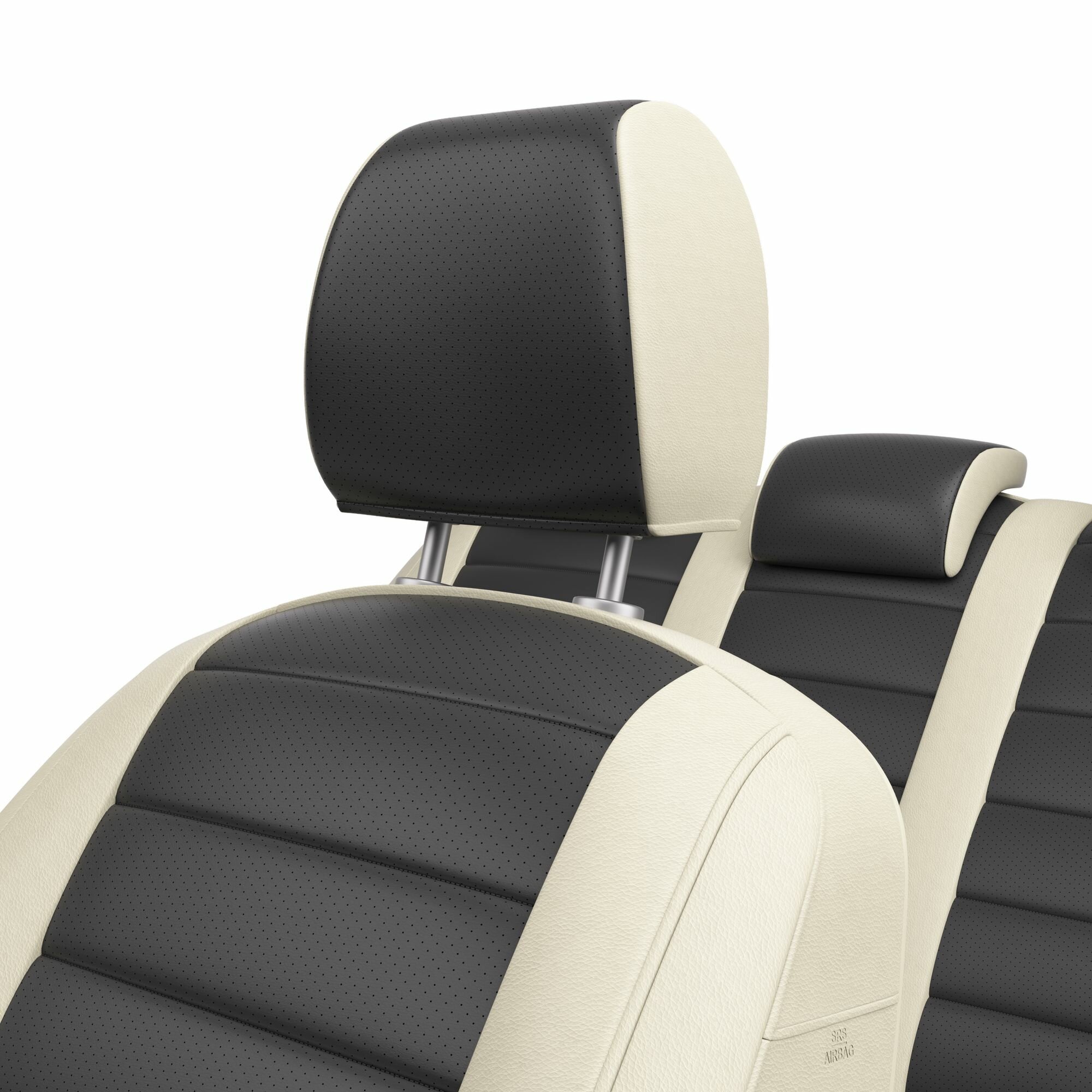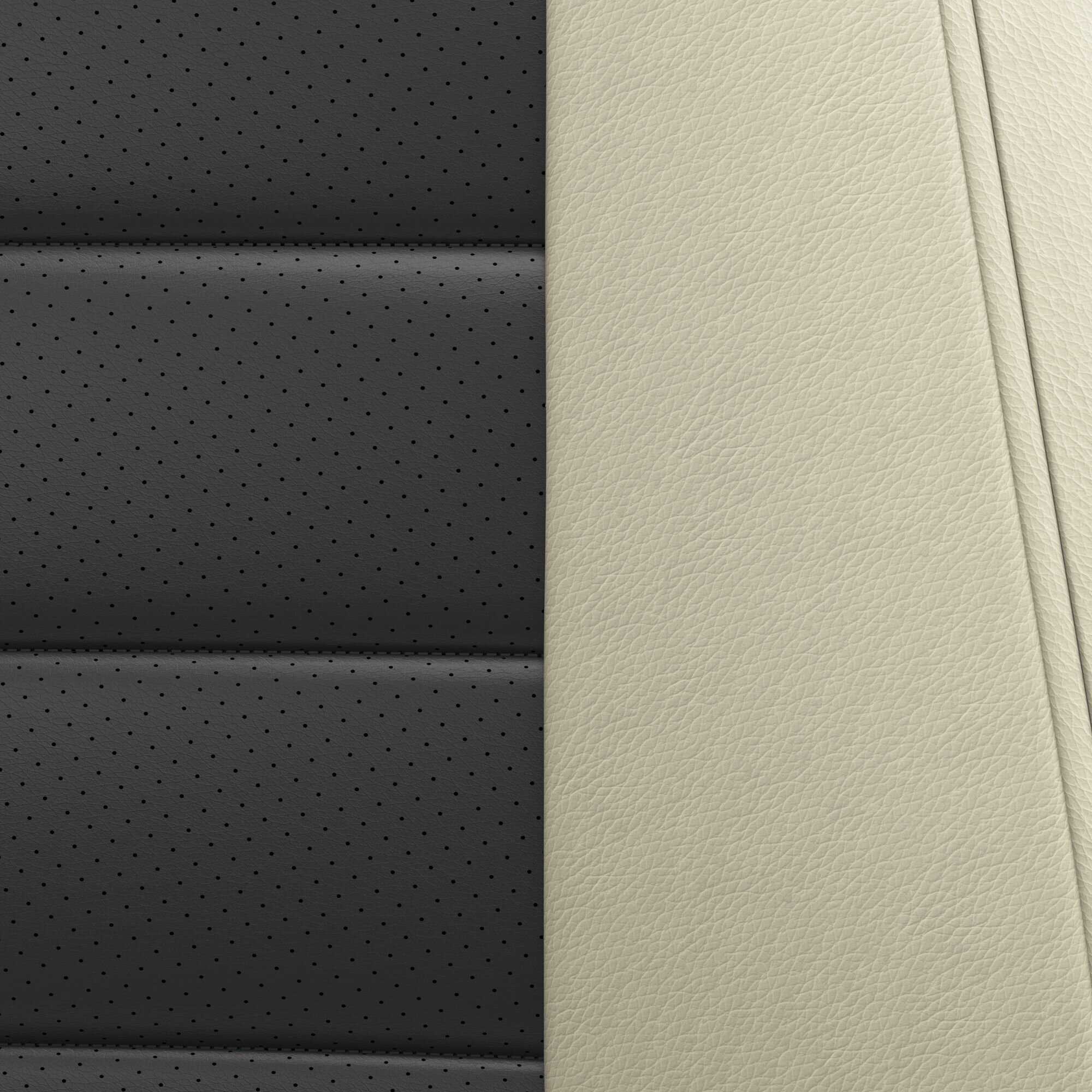 Материал центральной части - износостойкая Экокожа с перфорацией. , толщина 1.2 мм. Цвет - черный + подкладка 6 мм, из вспененного пенополиуретана для дополнительного комфорта и модельной посадки на сиденье. Материал боковой части - Белая Экокожа + 3 мм. вспененного пенополиуретана для 3D эффекта.