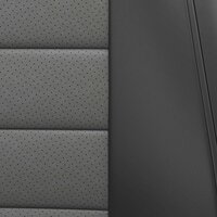 Материал центральной части - износостойкая Экокожа с перфорацией. , толщина 1.2 мм. Цвет - Темно-Серый + подкладка 6 мм, из вспененного пенополиуретана для дополнительного комфорта и модельной посадки на сиденье. Материал боковой части - Черная Экокожа + 3 мм. вспененного пенополиуретана для 3D эффекта.