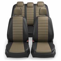 Материал центральной части - износостойкая Темно-бежевая Экокожа (толщина 1.2мм) с перфорацией + подкладка 6 мм, из вспененного пенополиуретана для дополнительного комфорта и модельной посадки на сиденье. Материал боковой части - Черная Экокожа + 3 мм. вспененного пенополиуретана для 3D эффекта.