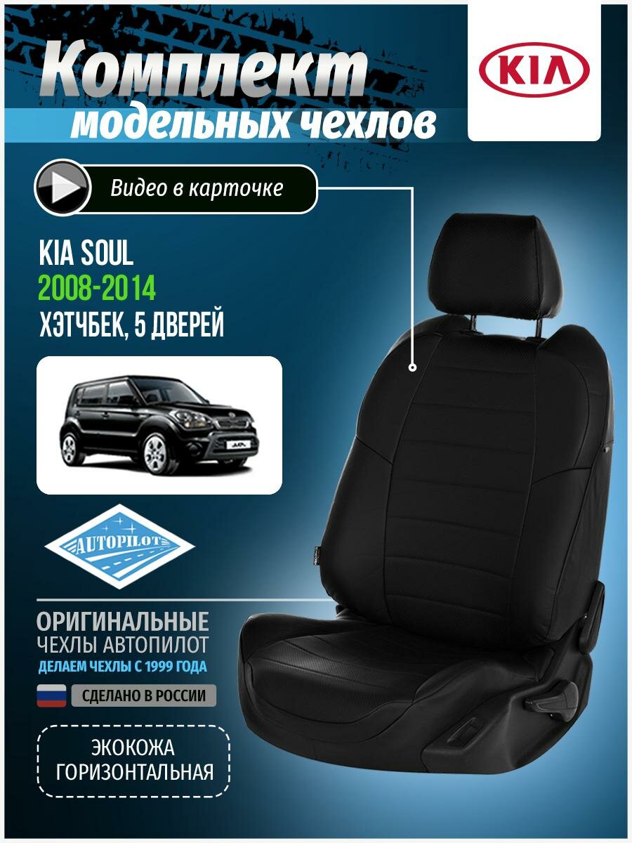 Чехлы для Киа Соул 1 2008-2014 годы выпуска 2008, 2009, 2010, 2011, 2012, 2013, 2014 хэтчбек, 5 дверей Задняя спинка 40 на 60, сиденье единое. Передний подлокотник в спинке, задний подлокотник Центр чехлов из Экокожа спинка и боковины из Экокожа. Цвет середины Черный. Цвет боковины и спинки авточехлов Черный. Авточехлы предназначены для защиты от загрязнений, центральная часть с перфорацией, Экокожа, Экокожа с перфорацией, Поролон. Толщина экокожи 1.2 мм. Крепление завязки, крючки, липучки. Состав комплекта: Передние спинки - 2, передние сиденья - 2, задняя спинка большая - 1, задняя спинка малая - 1, заднее сиденье сплошное - 1, подголовники передние - 2, подголовники задние боковые - 2, подголовник задний центральный – 1, подлокотник передний – 1 + 1 дополнительный, т. к. подлокотники бывают разные. На водительской спинке ТО под маленький подлокотник нет. Обратите внимание данный комплект чехлов не подходит на автомобили с кожаным салоном. В некоторых случаях требуется делать самостоятельно технические отверстия по месту для более аккуратной посадки чехла. Лекала авточехлов предназначены для автомобилей поставляемых для российского рынка, в случае приобретения данных авточехлов для автомобилей произведенных для рынков других стран, применимость чехлов не гарантируется тк могут быть отличия в сиденьях. Для автомобилей с правым рулем применимость не гарантируется. Модельные чехлы для KIA Soul 1 хэтчбек, 5 дверей 2008-2014 предназначены для использования именно на этом поколении автомобиля, сверяйте внимательно номер вашего кузова и особенности салона. Чехлы изготовлены со всеми технологическими отверстиями и не нарушают заводскую функциональность салона. Страна производства: Россия