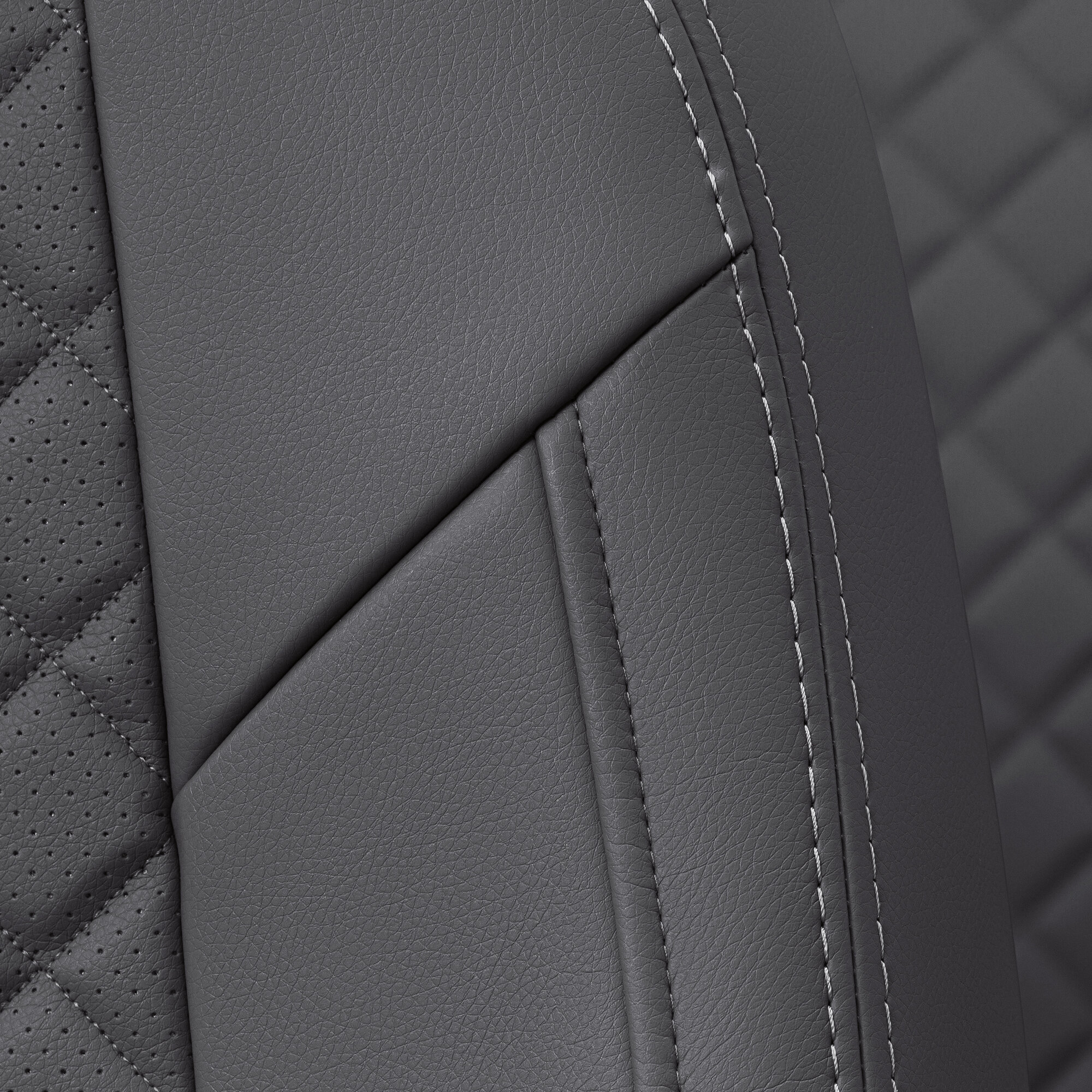 Современный дизайн авточехлов с прострочкой в стиле ромб для автомобиля Ниссан Альмера Н16 седан, хэтчбек 5 дверей 2000, 2001, 2002, 2003, 2004, 2005, 2006 года выпуска, цвет темно-серый, от производителя Пилот, артикул: ni-al-n16-tsts-r. Гладкая экокожа Аригон, толщиной 1.2 мм, с центральной перфорированной вставкой. Двойная строчка по передним сиденьям в цвет вставки. Перфорация улучшает показатели воздухообмена. Авто чехлы пилот изготовлены строго по оригинальным лекалам салона. После установки на автомобиль сохраняется весь функционал родного салона (раскладывание спинок, регулировки, изофиксы, ремни безопасности). Имеют специальный разрывной шов для подушек безопасности, если они есть в Вашем автомобили. Чехол для авто Ниссан Альмера Н16 седан, хэтчбек 5 дверей отличный подарок автолюбителю! Также автомобильные чехлы отлично подойдут, как тюнинг салона Nissan Almera N16 Sd/Hb
