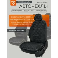 Чехлы на сиденья Шкода Рапид 2012-2023 г. в. (Skoda Rapid)/ Фольксваген Поло 2020-2023 г. в.(Volkswagen Polo sd)(без подлокотника, спинка заднего сидения 40/60)