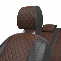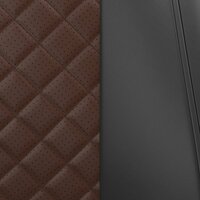 Материал центральной части - износостойкая Экокожа Ромб-Квадрат с перфорацией. , толщина 1.2 мм. Цвет - шоколадный + подкладка 6 мм, из вспененного пенополиуретана для дополнительного комфорта и модельной посадки на сиденье. Материал боковой части - Черная Экокожа + 3 мм. вспененного пенополиуретана для 3D эффекта.
