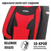 Авточехлы EXTRA COMFORT, анатом. поддержка, форм. велюр, 11 предм, карман, 6 молний. Яркие, динамичные чехлы из велюра COMFORT ECO-1105 обеспечивают анатомическую поддержку спины, боков и поясницы за счет специальных вставок из формованного велюра. Контрастное сочетание черной основы и красных перфорированных элементов придает салону спортивный стиль. Текстура — классический и формованный велюр с перфорацией.