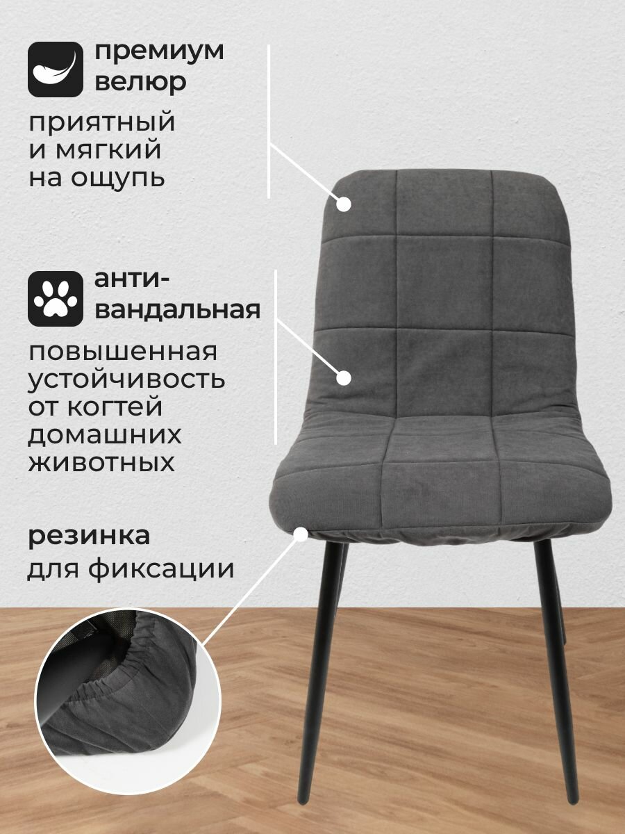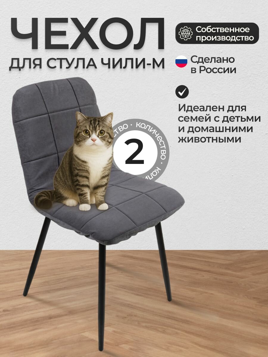 Чехлы на стулья, Комплект чехлов на стул со спинкой Чили-М из велюра, графит, 2 шт: сравнение цен, характеристики, фото, актуальное наличие и цены.