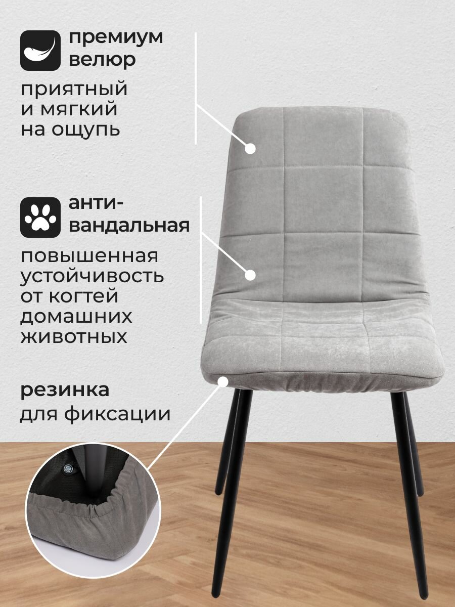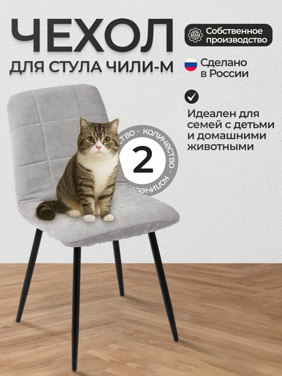 Чехлы на стулья, Комплект чехлов на стул со спинкой Чили-М из велюра, светло-серый, 2 шт: сравнение цен, характеристики, фото, актуальное наличие и цены.
