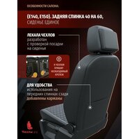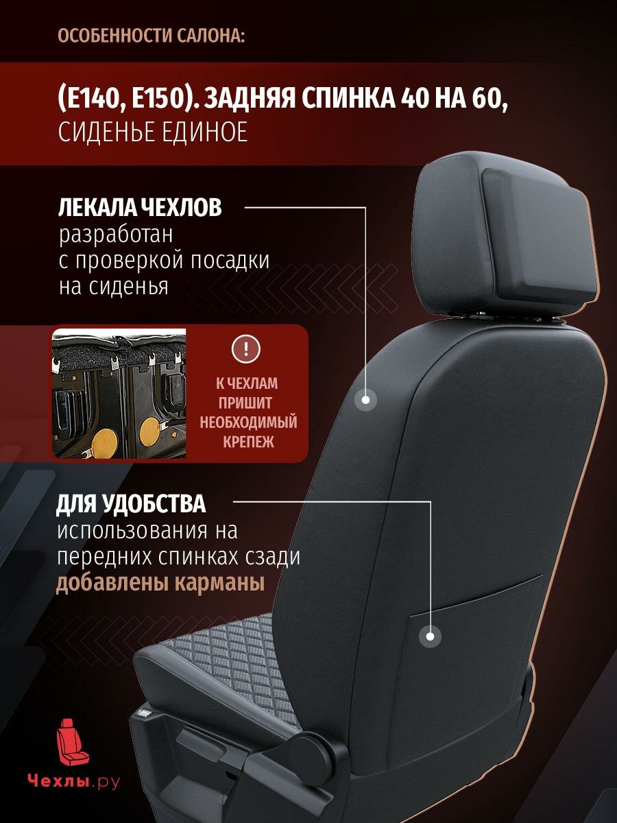 Модельные чехлы Тойота Королла 10 E140, E150 2006-2013 (E140, E150). Задняя спинка 40 на 60, сиденье единое спроектированы и сшиты специально для данной марки автомобиля. Учтены все конструктивные особенности салона: форма подлокотников и подголовников, габариты боковой поддержки кресел, расположение ремней, подушек безопасности и прочие швы для технических отверстий. Индивидуальный пошив обеспечивает максимальную точность подгонки.