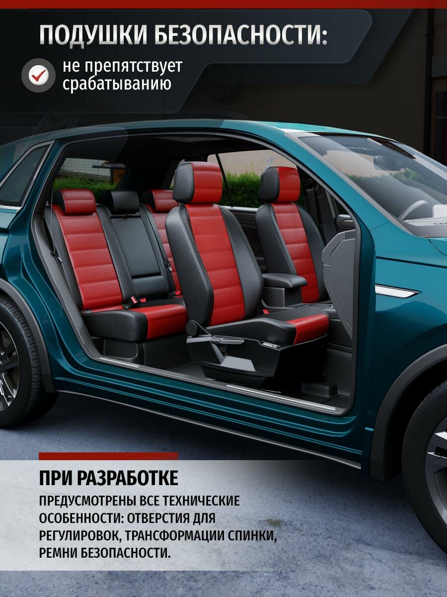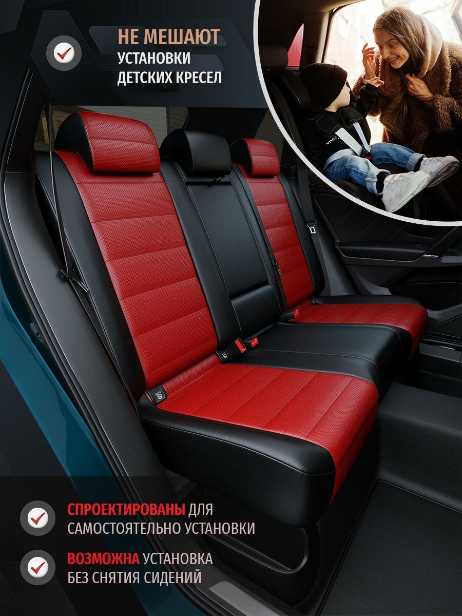 Центральная вставка Авточехлов, изготовленные из материала Экокожа с перфорацией, цвет Красный, а боковые вставки и спинка из материала Экокожа цвет Красный, придадут салону вашего автомобиля изысканность и помогут создать в нем комфортную атмосферу.