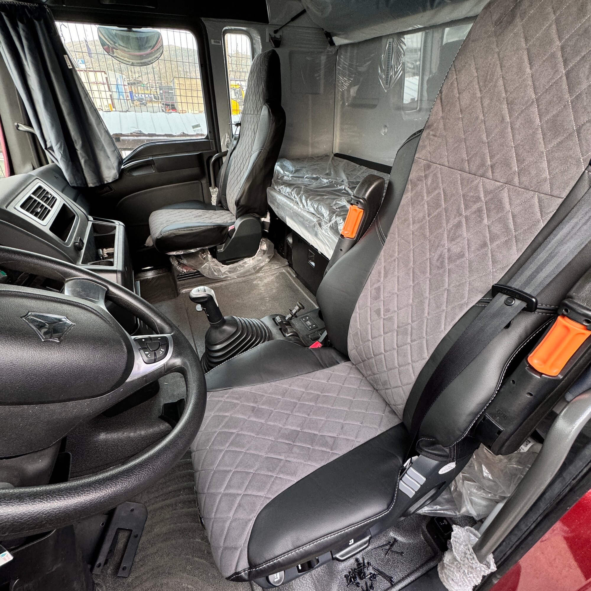 Комплект включает в себя 2 спинки и 2 сидушки, идеально подходящие для моделей SITRAK C7H и HOWO T5G. Лекала для чехлов разработаны до мелочей, что обеспечивает идеальную посадку на сиденья с вентиляцией.