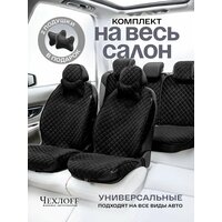 Купить Чехлы универсальные на весь салон в машину от ЧехлоFF, велюр, на передние и задние сиденья, 135×50 см, чёрные с доставкой по всей России.