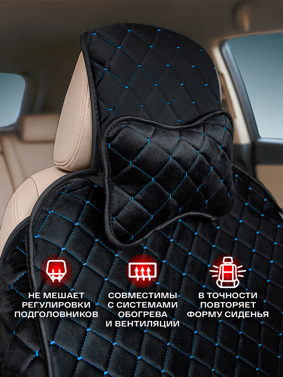 Чехлы универсальные на весь салон в машину от ЧехлоFF, велюр, на передние и задние сиденья, 135×50 см, чёрный, синий: сравнение цен, характеристики, фото, актуальное наличие и цены.