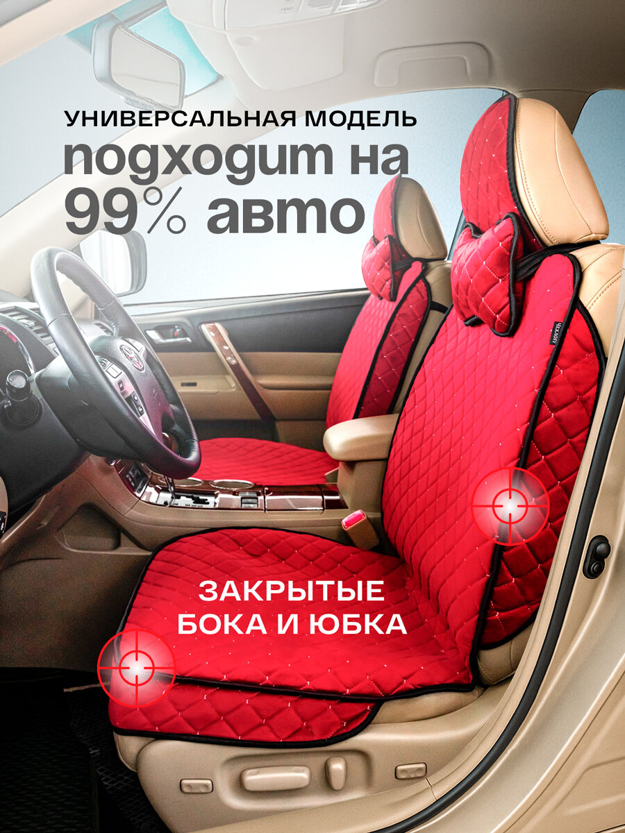 Купить Чехлы универсальные на весь салон в машину от ЧехлоFF, велюр, на передние и задние сиденья, 135×50 см, красный с доставкой по всей России.