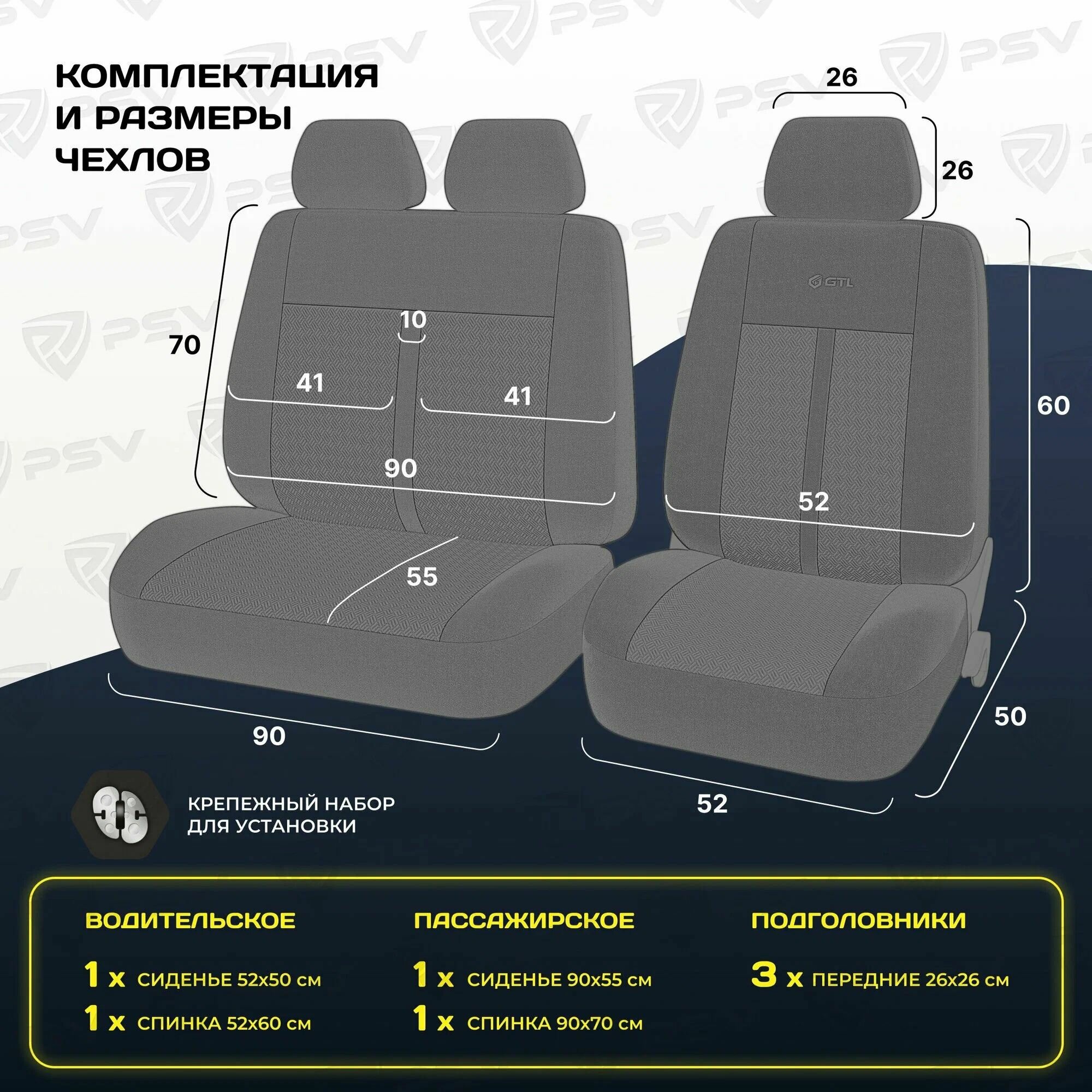 Автомобильные чехлы GTL Modern TRANSIT не только обновят внешний вид салона вашего автомобиля, но и сделают поездку более комфортной и удобной. Современный дизайн и сочетание текстур отлично впишутся в интерьер салона. Универсальный размер чехлов позволяет применять их к большинству коммерческих автомобилей*. Также авточехлы легко одеваются, снимаются, просты в чистке и удобны в эксплуатации. Материал: полиэстер с имитацией жаккарда Поролон – 2 мм Совместная система надевания Спинка пассажирского сиденья оснащена молниями для упрощенной установки под штатный ремень безопасности и удобной эксплуатации откидного столика Разрешено использовать в салонах, где присутствует подушка безопасности (AirBag) Комплектация: 1 передний чехол, 1 передняя спинка, 1 переднее сиденье, 3 стандартных подголовника для передних сидений, крепежный набор для установки. *Модели, к которым подойдут чехлы GTL Modern TRANSIT: BAW (Fenix, Tonik) Citroen (Jumper) FAW 10xx FIAT (Ducato, Scudo) FORD (Tourneo, Transit) GAZ (ГАЗель, Соболь, Баргузин) HYUNDAI (H100, Hd35, PORTER II, STAREX/GRAND STAREX) IVECO Daily KIA Bongo MERCEDES-BENZ (Sprinter, Vito) NISSAN Cabstar OPEL (Movano, Vovaro) PEUGEOT (Boxer, Expert, Partner) RENAILT (Mascott, Master, Trafic) UAZ Профи VOLKSWAGEN (Crafter, LT, Transporter)